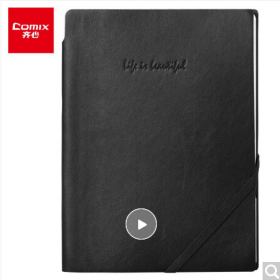 • 齐心/COMIX ECC5851薄本册笔记本子文具A5软皮面会议记录本创意斜绑带/记事本/日记本98张 黑色