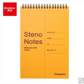 • 齐心/COMIX C4861 薄本册文具记事本小笔记本子/计划本/记录本/双螺旋装订速记本 防水防污PP封面 6*9 80张