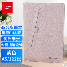 齐心/COMIX C5839薄本册 A5/122张 笔插皮面文具笔记本子/记事本/日记本 紫