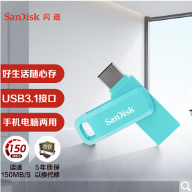闪迪/SanDisk 165 U盘/存储卡 Type-C USB3.1手机U盘DDC3 蓝色 至尊高速酷柔 64GB传输速度150MB/s 双接口设计 APP管理软件