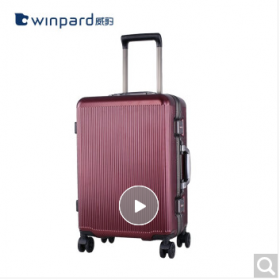 威豹/Winpard 98818旅行箱 拉杆箱行李箱男万向轮铝框20英寸登机旅行箱女24英寸硬箱 加厚纯PC坚固铝框顺滑 酒红 20寸