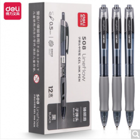 得力/deli S08 书写用笔类用具臻顺滑中性笔签字笔 0.5mm子弹头按动笔水笔 办公用品 黑色 12支/盒