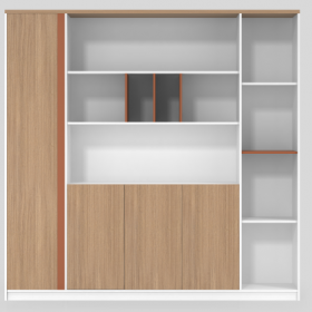 东业家具 MY-W20A 书柜 颜色 美洲柚木+暖白 尺寸2000*400*2000
