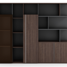 东业家具 RZ-W296A 书柜 颜色 鸡翅木+纯黑+铁灰 尺寸2960*400*2000H