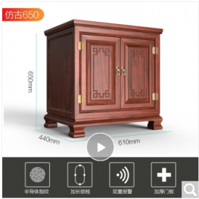 虎牌 H600保密柜 WiFi小型隐形固定入墙防盗半导体指纹密码保管箱保险箱办公60cm高 【仿古650花梨色】