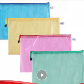 广博/GuangBo A6113 文件袋 10只B5文件袋网格拉链袋资料袋 4色混装颜色随机