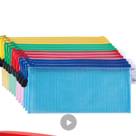 广博/GuangBo A6112 文件袋 12只装A4防水网格拉链文件袋 单色颜色随机