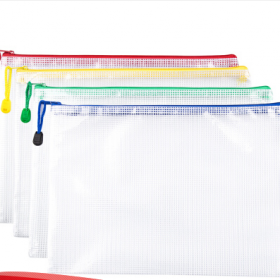 广博/GuangBo A6122文件袋 4只A4文件袋网格拉链袋资料袋 4色混装颜色随机