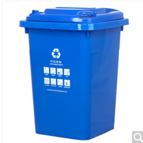 科力邦/Kelibang KB1043塑料制品 户外垃圾桶 大号加厚50L干湿分类垃圾桶带盖市政环卫 蓝色 可回收