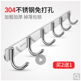 茶花/CHAHUA C610挂钩衣实心大挂衣钩衣帽排钩壁挂衣服挂钩浴室卫浴挂件衣勾可免钉免打孔银色四排钩