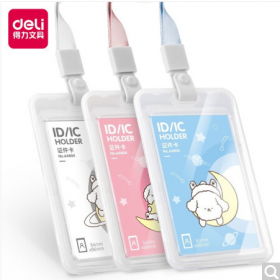 得力/deli 64812 铭牌PVC竖式挂绳证件卡套 透明 24只/盒 64812