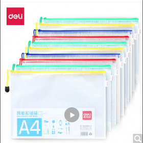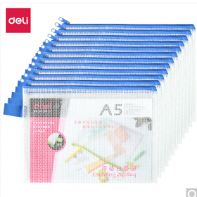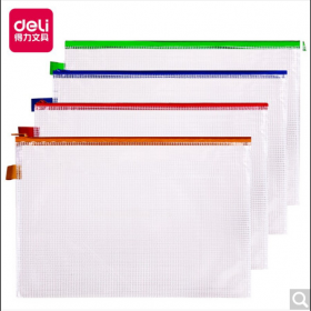 得力/deli 5654 文件袋10只A4透明网格拉链袋 资料文件袋 单色随机5654