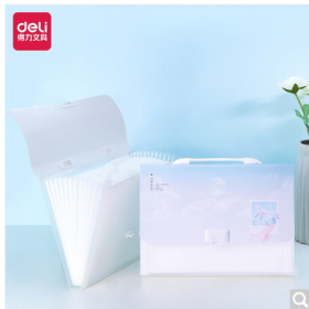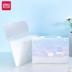 得力/deli 72570 文件夹13格A4手提风琴夹 北冥有鱼系列 蓝72570