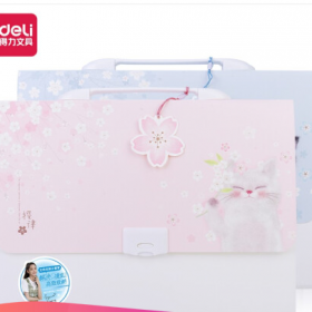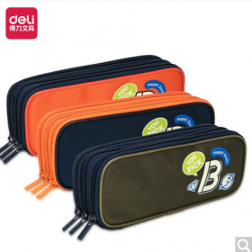 得力/deli 66998 收纳包大容量学院风学生笔袋 小方包文具盒 学生文具收纳袋铅笔盒 颜色随机 66998
