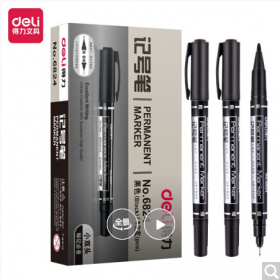 得力/deli 6824 书写用笔类用具黑色双头多用油性记号笔签字笔 勾线笔会议笔马克笔12支/盒6824