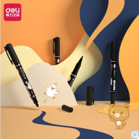 得力/deli s563 书写用笔类用具黑色双头记号笔美术绘画勾线笔 12支/盒s563