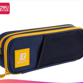 得力/deli 67029 收纳包大容量双层学生笔包铅笔盒收纳包深蓝色 67029