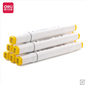 得力/deli 70801A 书写用笔类用具6支单色方杆双头 马克笔套装学生手绘漫画设计绘画彩笔画笔 35号柠檬黄70801A