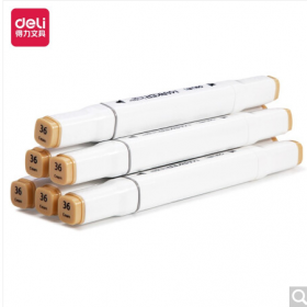 得力/deli70801A 书写用笔类用具6支单色方杆双头 马克笔套装学生手绘漫画设计绘画彩笔画笔 36号奶黄70801A