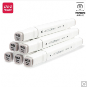 得力/deli 70801A 书写用笔类用具6支单色方杆双头 马克笔套装学生手绘漫画设计绘画彩笔画笔 WG3暖灰70801A