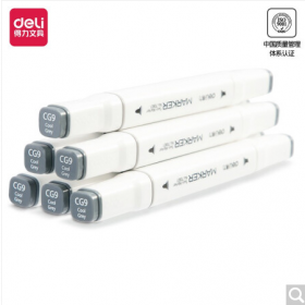 得力/deli 70801A 书写用笔类用具6支单色方杆双头 马克笔套装学生手绘漫画设计绘画彩笔画笔 CG5号冷灰70801A