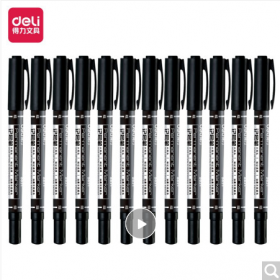得力/deli s831 书写用笔类用具细杆双头多用物流油性记号笔 勾线笔会议签字笔马克笔黑色12支/盒s831