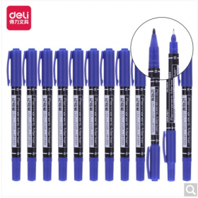 得力/deli s831 书写用笔类用具细杆双头多用物流油性记号笔 勾线笔会议签字笔马克笔蓝色12支/盒s831