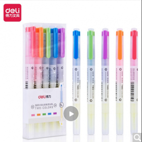 得力/deli s619 书写用笔类用具6色双头双色荧光笔重点标记笔 手帐可用水性记号笔5支/盒s619