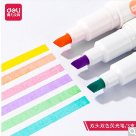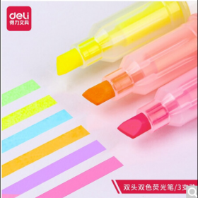 得力/deli 33637 书写用笔类用具6色柔彩荧光笔套装 醒目标记笔 手帐可用水性记号笔 柔彩色系3支6色33637