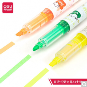 得力/deli S748 书写用笔类用具欧阳娜娜3色荧光笔套装 直液式醒目标记笔 手帐可用水性记号笔 3支/盒S748