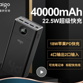 爱国者/Aigo C40S 手机充电器充电宝22.5W华为快充 40000毫安移动电源四口输出 适用于华为小米苹果 黑色