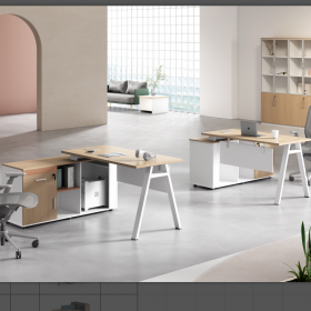 安格佳 MY-01F12办公桌 颜色 美洲柚木+暖白 规格1200*600*750