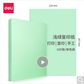 得力/deli 7757喷墨/相片纸/卡纸A4 80g浅绿色复印纸 彩色打印纸 儿童手工折纸彩纸 非硬卡纸 100张/包