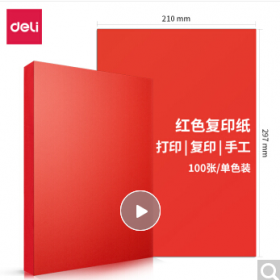 得力/deli 7758喷墨/相片纸/卡纸A4 80g大红色复印纸 彩色打印纸 儿童手工折纸彩纸 非硬卡纸 100张/包