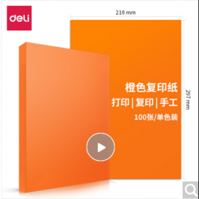 得力/deli 7758喷墨/相片纸/卡纸A4 80g橙色复印纸 彩色打印纸 儿童手工折纸彩纸 100张/包