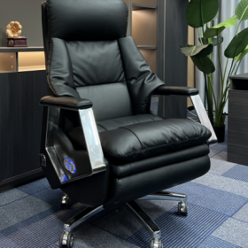 国景 GF1629 办公椅 智能语音+按摩 只需一句话 无需WIFI 无线储电2个月 双层坐垫 软包厚达 11CM大班椅 真皮 转椅 黑色