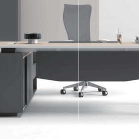 安格佳 GJG-RK-B24R 办公桌 尺寸 2400W*1800D*750H 铁灰色+白蜡木+麻白 主管桌 现代工作桌 职员桌
