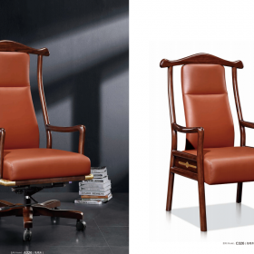 国景 YLA326 办公椅 131*72*74 实木转椅 会议椅 乌鸡木 进口牛皮全牛皮