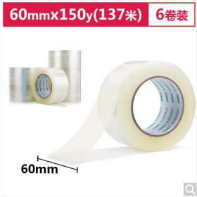 得力/deli 30334 胶带高品质透明封箱胶带/打包胶带 60mm*150y(137m/卷) 6卷/筒 30334