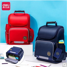 得力/deli 245收纳包收纳用品小学生书包 儿童男孩背包 轻便减负透气书包双肩包 适用1-6年级 深蓝色 B5
