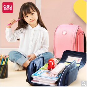 得力/deli 248收纳包收纳用品小学生书包 儿童女孩背包 轻便减负透气书包双肩包 适用1-6年级 粉红色 B5