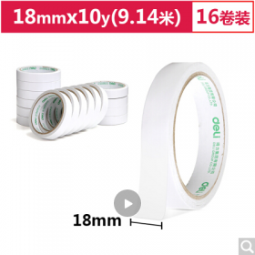 得力/deli 30402 胶带高粘性棉纸双面胶带 18mm*10y(9.1m/卷) 16卷袋装 30402