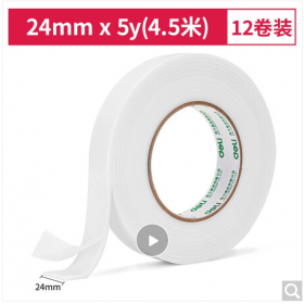 得力/deli 30412 胶带强力高粘度EVA泡棉双面胶带 24mm*5y*2.5mm 12卷袋装 白色30412