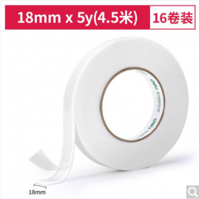 得力/deli 30411 胶带强力高粘度EVA泡棉双面胶带 18mm*5y*2.5mm 16卷袋装 白色30411