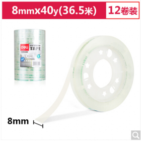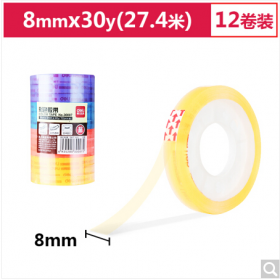 得力/deli 30002 胶带易撕透明办公文具胶带 学生小型修正胶带8mm*40y(36.6m/卷) 12卷/筒30002