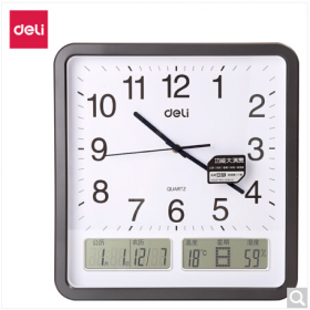 得力/deli 8823 座钟现代简约创意挂钟 万年历温湿度显示创意时钟 客厅卧室低噪音挂钟 8823