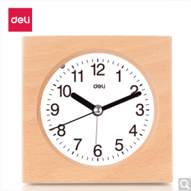 得力/deli 8816 座钟低噪音正方形榉木闹钟贪睡闹钟 木纹色8816