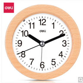 得力/deli 8810p 座钟3.5寸低噪音圆形榉木闹钟贪睡闹钟 木纹色8810p