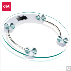 得力/deli 9028 电子秤圆形LCD液晶显示电子 钢化玻璃材质9028