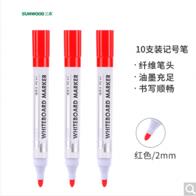 三木/SUNWOOD P3书写用笔类用具效率王系列 10支装红色 单头油性白板笔 会议物流绘画速干型白板笔